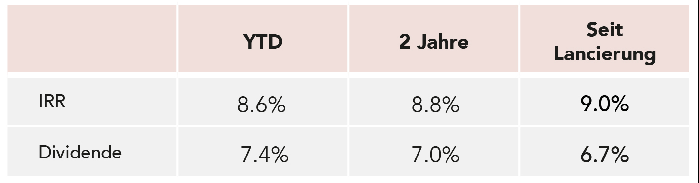 Der IRR von RENAISSANCE EVERGREEN beträgt 8.6% seit Beginn des Jahres 2022 (« Year-To-Date ») inklusive einer Dividende von 7.4% an die Anleger.