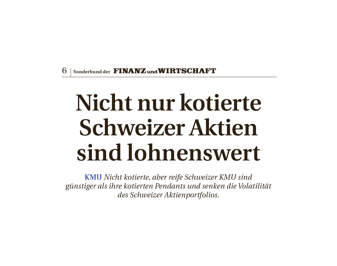 Die Wirtschaftszeitung „FINANZ und WIRTSCHAFT“ berichtete in ihrer Ausgabe vom 7. September 2024 über die Anlagekategorie nicht kotierter Schweizer Aktien, worunter auch die Renaissance Anlagestiftung fällt.